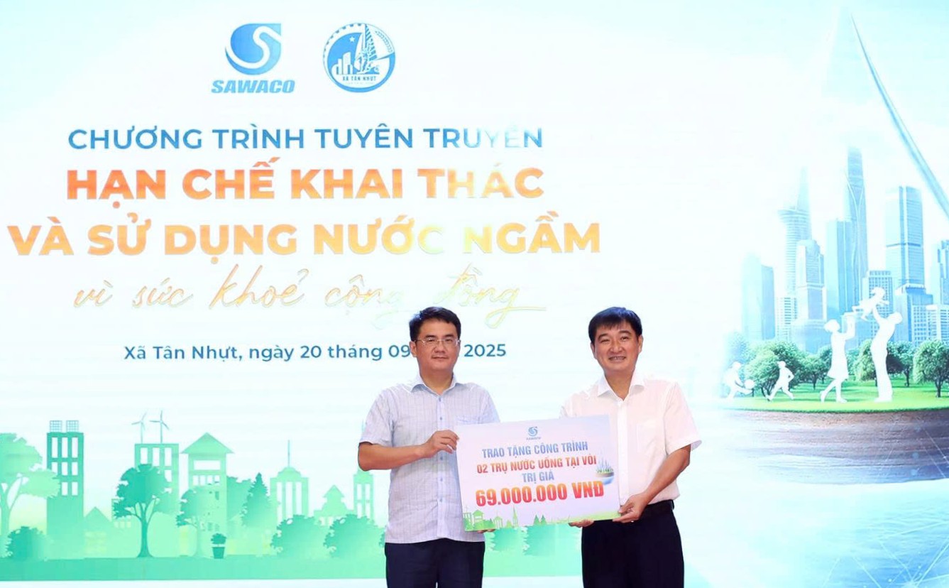 Công ty Cổ phần cấp nước Tân Hòa phối hợp phường Tân Sơn tổ chức chương trình tuyên truyền người dân hạn chế khai thác và sử dụng nước ngầm kết hợp truyền thông các dịch vụ cấp nước năm 2025. Công ty tuyên truyền tầm quan trọng của nước sạch, hạn chế khai thác nước ngầm; vận động người dân trám lấp giếng khoan, giảm hóa đơn có chỉ số tiêu thụ 0-4m3, các dịch vụ cấp nước của SAWACO và các thông tin, kỹ năng phòng ngừa lừa đảo và Hướng dẫn cài đặt app CSKH SAWACO, tuyên truyền các kênh thanh toán, thu hộ của Công ty, vận động 20 hộ dân ký cam kết chuyển đổi sử dụng nước giếng sang nước máy, Trao tặng 20 phần quà nhu yếu phẩm cho 20 hộ dân tại địa phương