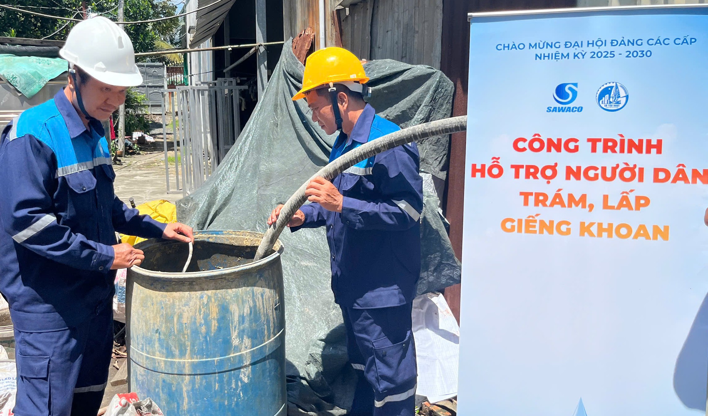 Công ty CP Cấp nước Nhà Bè lắp đặt 02 trụ nước uống công cộng tại UBND Xóm Chiếu, Tân Hưng. Đồng thời ra quân tư vấn trực tiếp tại nhà khách hàng: Hướng dẫn khách hàng cài đặt và sử dụng App CSKH SAWACO; Hỗ trợ cập nhật thông tin định danh, cấp định mức nước; Giải đáp thắc mắc về dịch vụ cấp nước, tiếp nhận phản ánh, khảo sát sự hài lòng để nâng cao chất lượng phục vụ.