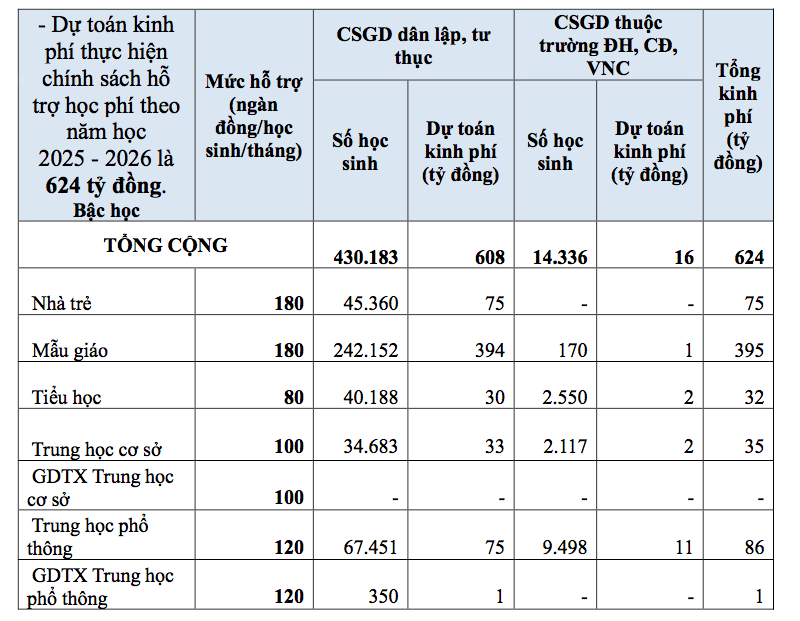 Dự toán năm 2025 chính sách hỗ trợ khoảng 276 tỉ đồng và năm 2026 là khoảng 639 tỉ đồng.