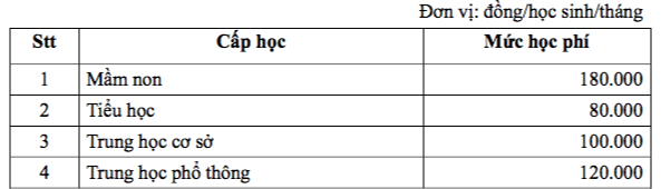 Cụ thể mức học phí như sau: