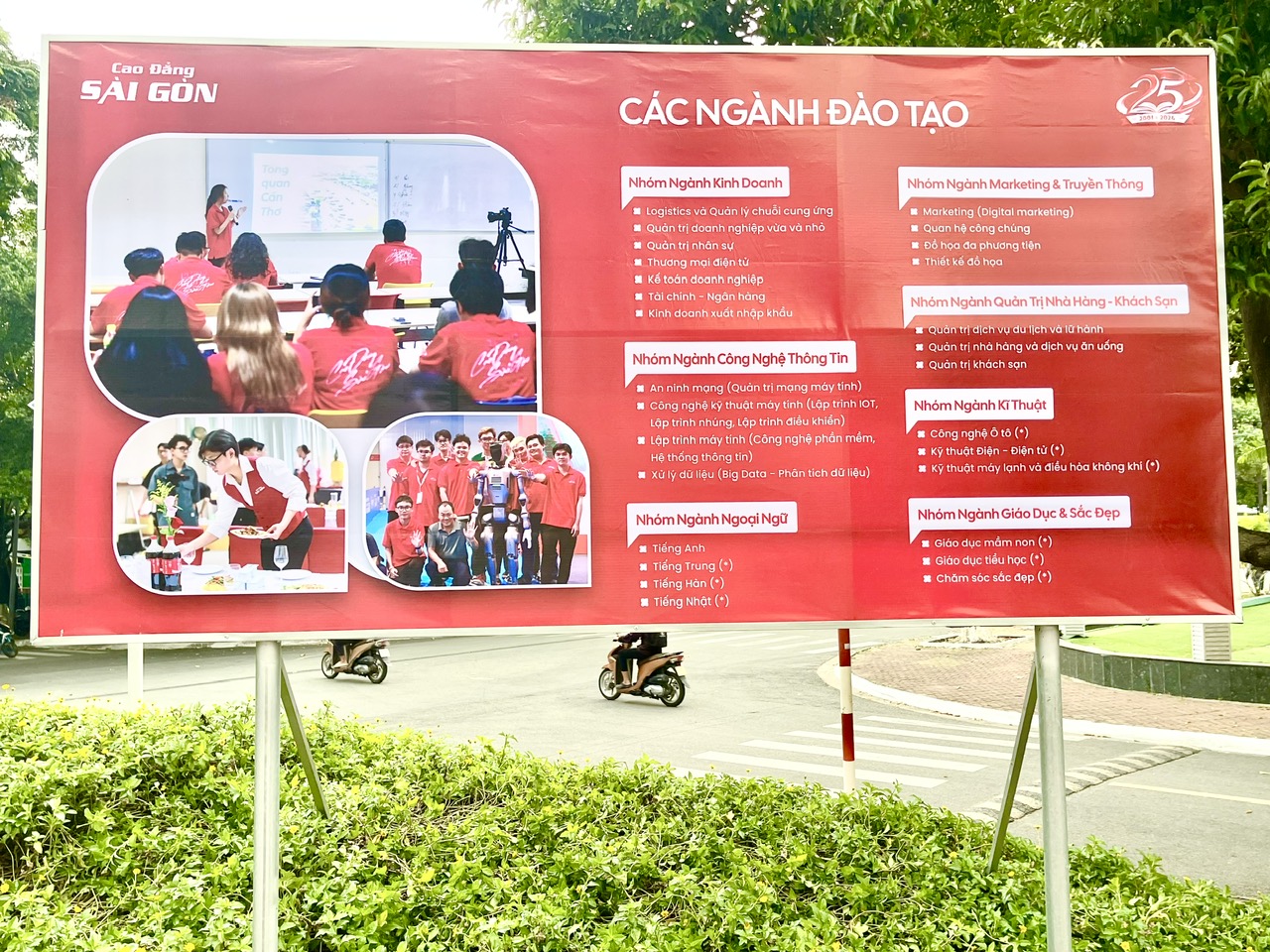 Bước vào đợt tuyển sinh 2026, Trường Cao Đẳng Sài Gòn (SaigonTech) đã khởi đầu bằng các hoạt động vui khoẻ và đầy ắp yêu thương, mọi người đều sôi nổi làm việc, giảng dạy, học tập hăng say trong không khí chuẩn bị đợt cao điểm phục vụ mùa tuyển sinh sắp đến. Vì vậy công tác trang trí, làm xanh- sạch- đẹp ngôi trường đã bắt đầu và mở màn bằng việc treo dựng băng rôn, pano, áp phích hoà nhịp cùng hoạt động kỷ niệm 25 năm thành lập trường (2001 - 2026) với nhiều hoạt động phong phú, trẻ trung, đậm đà ý nghĩa xã hội và nhân văn.