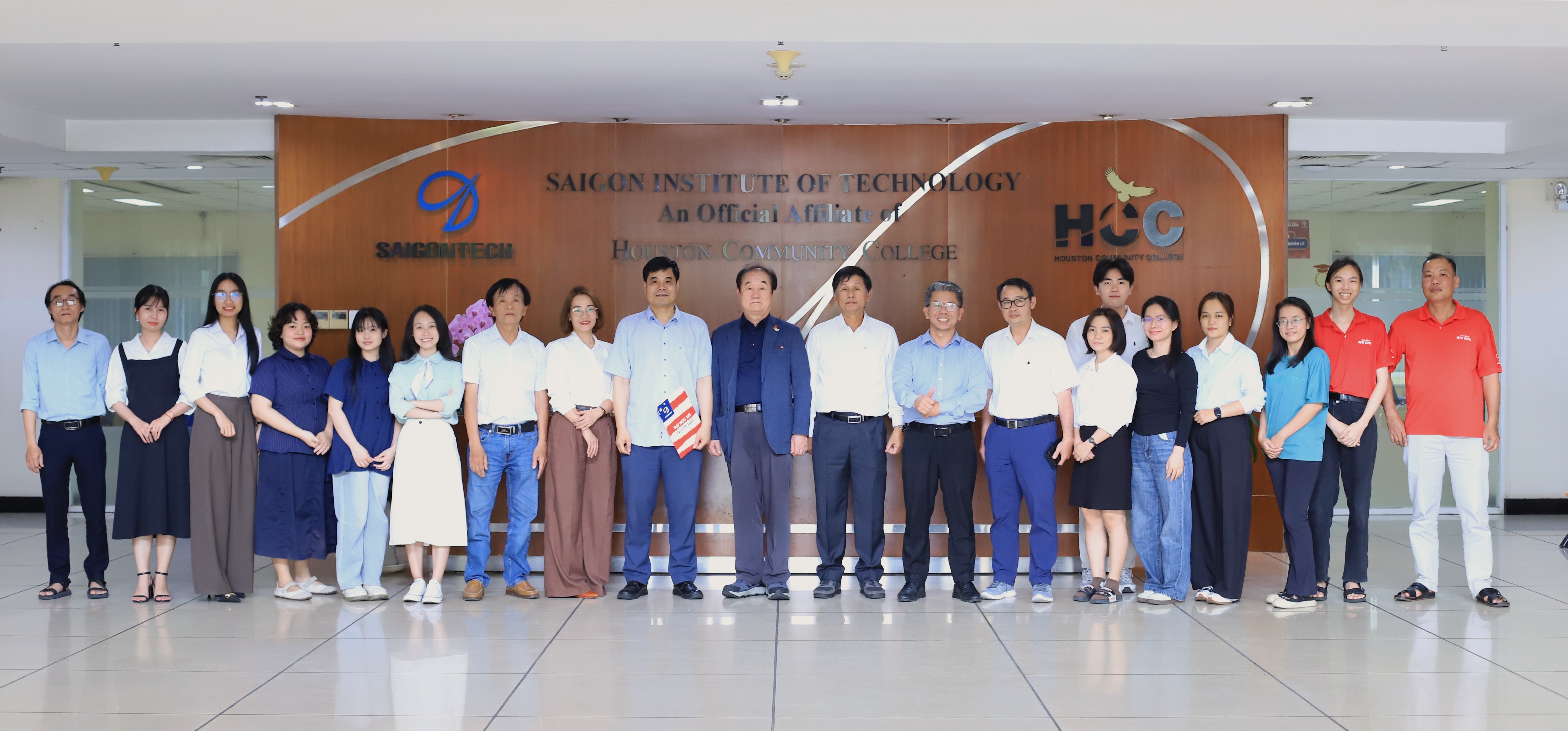 Gíáo sư Ahn (thứ 10, từ trái) và Ban Giám hiệu, giảng viên, CBCNV Trường Cao Đẳng Sài Gòn